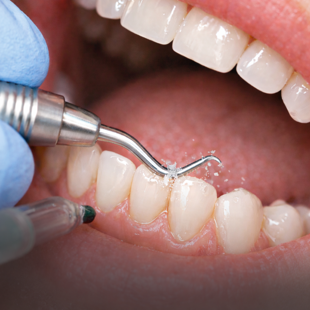 A raspagem periodontal é um procedimento indicado para a remoção profunda de placa bacteriana e tártaro, especialmente nas áreas abaixo da gengiva. Diferente da limpeza de rotina, ela atua diretamente no controle das doenças gengivais, tratando a causa da inflamação.